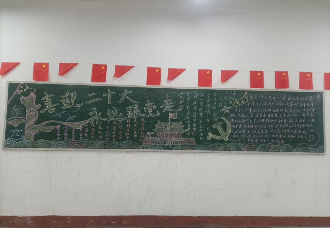 此次的黑板报比赛让同学们加深了对二十大的了解,更好地肩负时代重任,坚定不移地跟党走,争做新青年,永做追梦人,以实际行动为人民谋幸福,为民族谋复兴!