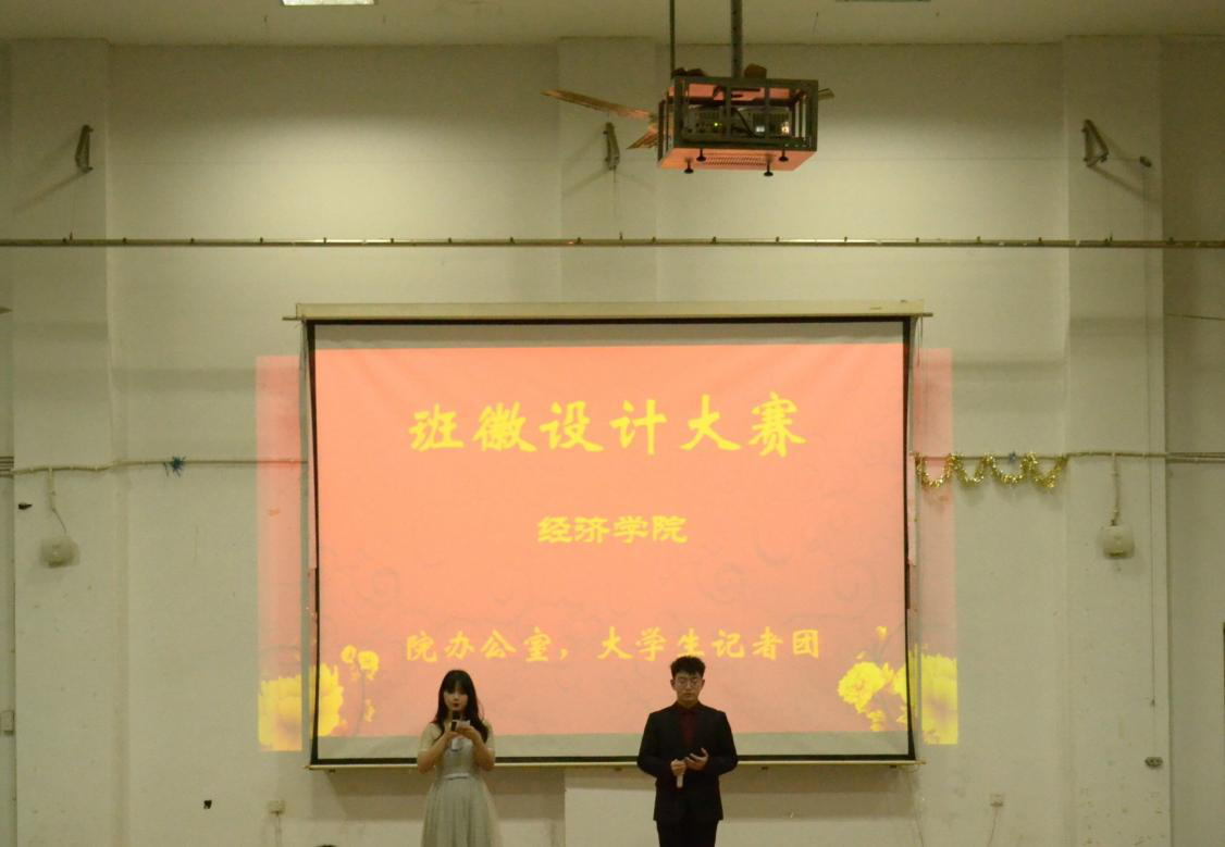 比赛开始前,大学生记者团志愿者绘制了宣传海报并张贴于义丰楼一楼大厅,全体志愿者也进行了下班宣传,以确保活动的顺利进行。各班积极踊跃报名,提交作品。评委通过初赛评审六个优秀班级进入决赛,评选结果于义丰楼一楼大厅张贴公示。在决赛中,各班的班长或同学代以PPT的形式向在场观众介绍了本班的班徽设计图纸,并讲解了构思过程、寓意等内容。评委根据各班的班徽设计理念、PPT制作及讲解表现进行了现场评审评分,并由院办公室的志愿者现场统计分数。接着,院办公室和大学生记者团志愿者带来了精彩的表演,现场气氛高涨,在场观众激情四射。最后,A2124班摘得桂冠,陈曦老师为其颁奖,并合影留念。