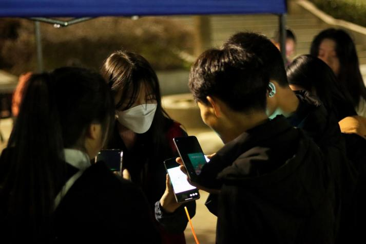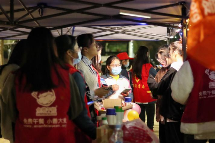 于晚上七点半,同学们准时抵达荧光漫步起点---北区田径馆门口,在了解清楚活动的流程和规则,拿到志愿者发放荧光棒和气球,扫完起点处的签到码后,荧光漫步活动正式开始。所有参与者一起出发,他们手带荧光手环和五颜六色的气球,把整个校园装点成一个荧光闪耀的欢乐海洋,涌动的荧光队伍形成了一道道亮丽的风景线。沿途设立了四个签到点,每个签到点都有各自的任务和签到码,同学们都认真完成活动发布的任务,这个过程不仅为同学们交友提供了环境,也缓解了同学们学业的精神压力,大家欢声笑语,为夜晚时分的九院增添了一片青春的活力。九点左右,参加活动的同学基本都抵达了终点,志愿者们为其发放了参与的小奖品,并提倡同学们捐出今天的步数来支持免费午餐计划,赢得了同学们的欢呼和感谢。