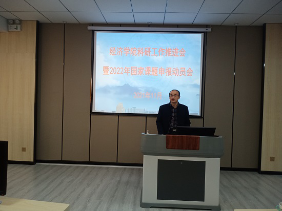 为进一步加强经济学院科研工作,推进2022年国家课题申报,24日下午,学院在文理实验楼309召开科研工作推进会暨2022年国家课题申报动员会,学院领导班子成员、教研科负责人和全体专任教师参加了会议,会议由院长项益才主持。