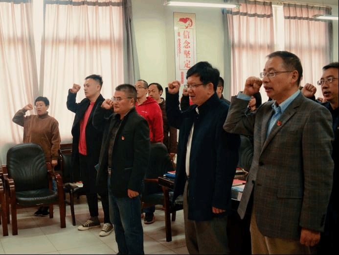 活动最后,在“寿星”党员杨盛标同志代领下,全体党员重温入党誓词。同志们热血沸腾、精神饱满地一起