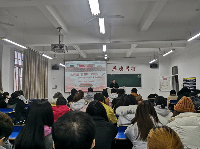 菊如教授围绕党的十九届五中全会召开的背景、主要成果、文件起草的情况,突出特点及亮点,对党的十九届五中全会精神进行讲述解读,全面准确、生动活泼地宣传宣讲了党的十九届五中全会精神,令学生党员进一步意识到党的十九届五中全会的意义之重大,党的十九届五中全会精神给予中国人民的力量之强大。