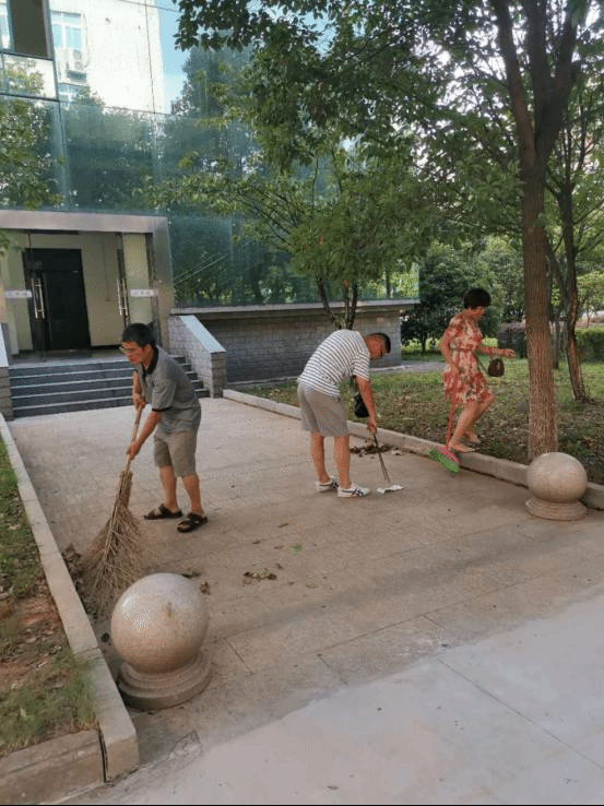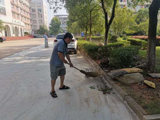 尽管烈日当空,但老师们毫不顾及炎热和辛苦,对义丰楼周边垃圾、树叶、废弃物等进行全面清扫和整理,在老师们的共同努力下,义丰楼周边变得干净整洁了。