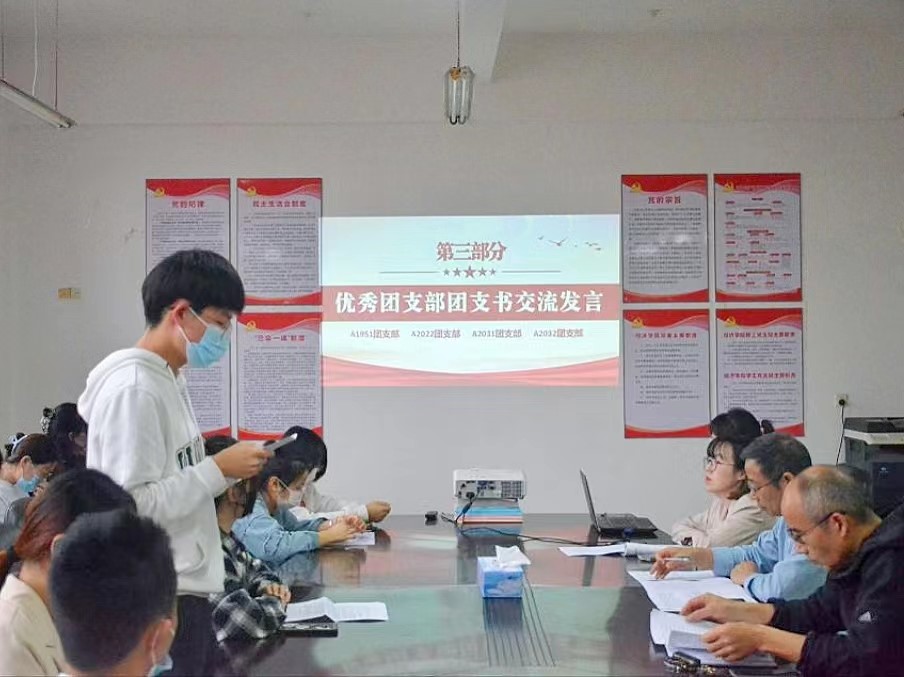 会上,学生们合唱了共青团团歌,重温了入团誓词。谢书记带领大家学习了习近平总书记在建团百年大会的重要讲话精神。随后,优秀团支部团支书分享了团支部建设的宝贵经验,强调了做好班级规划的重要性。漆书记带领大家回顾了共青团100年的奋斗历程对所有青年团员提出了三点期望,一要坚定信念,紧跟党走;二要做好本职工作,投入社会实践;三要与时代同行,在青春的赛道上奋勇争先。