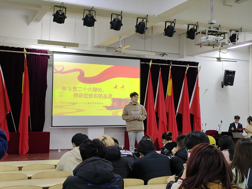 活动中,谭梅老师针对党的二十大精神进行简单讲解,要始终高举中国特色社会主义伟大旗帜,全面贯彻习近平新时代中国特色社会主义思想,发扬伟大的建党精神,自信自强、守正创新,勇毅前行,并对各位同学提出殷切期盼,希望同学们要切实学习贯彻党的二十大精神,不忘初心牢记使命,生逢其时,更要奋斗其时,为全面建设社会主义现代化国家、全面推进中华民族伟大复兴而团结奋斗。随后四位同学也分别表述自己的见解,并共同表示作为新时代青年,一定要坚定跟党走的信心、决心,传承和发扬党的二十大精神,踔厉奋发,笃行不殆,与祖国共命运,与时代同发展,培养良好品德,勤奋学习,树立崇高理想,谱写新时代中国特色社会主义更加绚丽的华章。