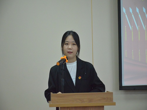 紧接着由团委老师郭格格宣讲23届学生会任命名单,表达了对新一届学生会干事的祝贺。新任学生会学生代表许学航进行表态发言,展示出新任学生会的责任和担当。