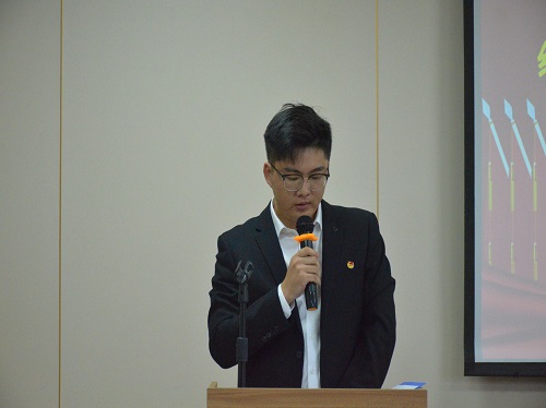 颁奖仪式结束后,由22届学生会主席耿晓毅汇报工作,总结了22届及其往届所做出的努力和取得的成果。
