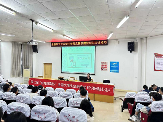 本次活动首先由九江营业部王剑为同学们讲解有关学科竞赛的定义,分享有关学科竞赛的分析报告,初步提升同学们对竞赛的兴趣和对学习的热情。然后讲师为同学们介绍了“东方财富杯”2023年全国大学生金融安全知识网络比拼活动和第二届全国ETF模拟投资菁英挑战赛,让同学们了解到了金融安全的重要性,同时也让同学们了解了有关金融投资的相关知识。活动最后,讲师邀请同学提出自己的疑问,各班同学均积极提问有关竞赛的问题,讲师也一一耐心为同学解答,本次活动得到了较好的反响。