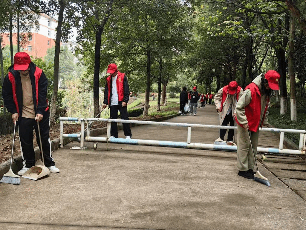 为推进taptap点点官网资助育人工作的开展,培养学生的感恩意识,taptap点点官网于2023年11月8日下午组织受助学生进行义务打扫校园活动,地点为西门莲池附近道路。