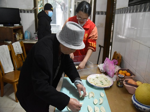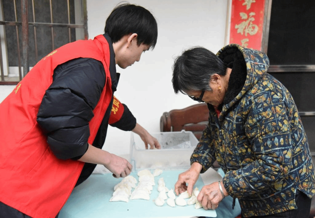 此外,志愿者们还为老人们准备了包饺子的活动。大家一起动手包饺子,传承着中国传统文化,共同享受这份团圆的快乐。志愿者们与老人们亲切交谈,了解他们的生活情况,为他们送上温暖的祝福和关怀。