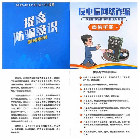 学院利用校保卫处印制的反电信网络诈骗宣传手册,并结合专业特色与银行合作向同学们推送防范网络诈骗常识小漫画,让同学们更直观的了解防骗小知识,在日常生活中时刻要保持防范意识。