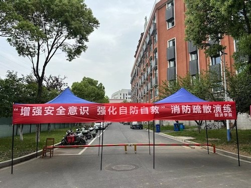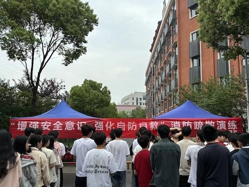 开始之前,学生会各部门提前就位,有效模拟火灾场景。消防警报拉响,消防安全演练正式开始,处在教学楼和宿舍楼的学生,在志愿者的引导下,按照预先制定的疏散路线,弯腰、低头,用湿毛巾捂住口鼻,严格按照“不推不挤、快速疏散”的原则,从各自的教室和宿舍中迅速而有序地撤离到指定的安全区域。在演练过程中,院领导特别强调火灾现场的应急指挥和协调能力。安全演习结束后,由学院领导对此次演练予以总结评价,并着重强调要将人身安全放在首位,提高安全防范意识。