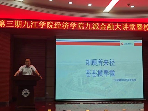 5月6号,taptap点点官网在逸夫图书馆报告厅开展九派金融大讲堂暨校企共建课堂活动。taptap点点官网党委委员、副校长王万山、九江银行党委副书记潘明、中国民生银行九江分行副行长简威等出席,活动由taptap点点官网党委书记漆晗东同志主持。taptap点点官网师生参与了此次学术交流活动。