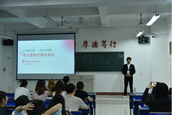 5月13日,邀请考上国家公务员的应届生涂佳慧和韩婷同学2位分享自己的经验,开展就业育人系列活动(一)之“考公分享会” ,助力同学们理清考公备战思路,掌握考公技巧。