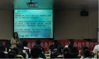9月29日上午,邮储银行九江市分行人力资源部总经理李君进入taptap点点官网课堂,为经A2251/2252同学讲授了一堂精彩的课程。李君结合自己从业务主管到人力资源主管的经历,既给同学们讲解了商业银行零售业务的原理及营销技巧,又为同学们讲述职业规划,并向同学们介绍目前就业市场的情况,鼓励同学们多多前往银行实习,提高自己的专业能力。