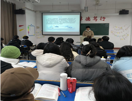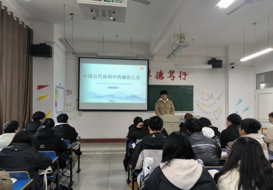 课中顾艳辉老师选取学生代表展示PPT并进行演讲,学生代表吕伯云同学以《中国古代诗词中的诚信之光》为演讲题目首先说明了诚信的重要性,其次生动地讲解了中国古代描述诚信的相关诗词,最后进行总结,希望每位同学都做到诚实守信,珍视自己的个人信用记录。