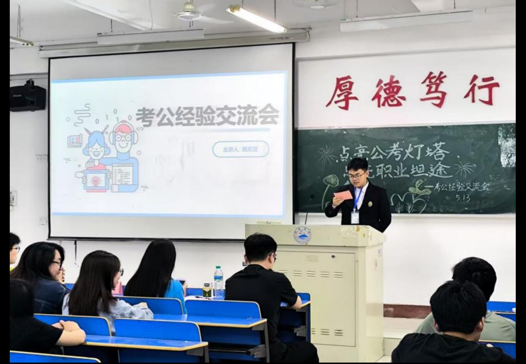 为帮助taptap点点官网学生更好地了解考公流程、掌握备考技巧,助力更多同学突破备考瓶颈。5月13日晚上,taptap点点官网在义丰楼307教室举办考公经验交流会。