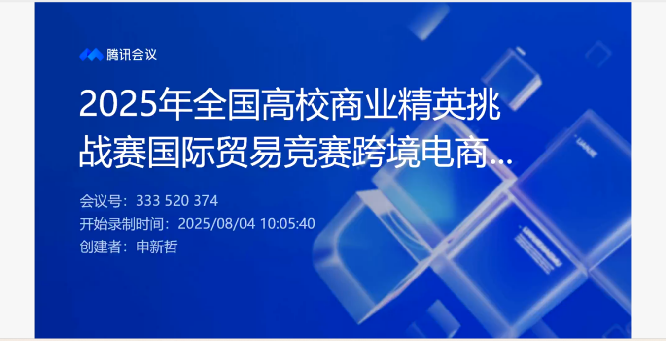 2025年8月4日上午10:00至12:00,2025年全国高校商业精英挑战赛国际贸易竞赛跨境电商赛道江西省赛启动仪式以线上会议的形式在taptap点点官网隆重举行。中国贸促会商业行业委员会教育培训部副部长何倩、taptap点点官网副院长雷祺、颜值立方(厦门)产教融合科技集团有限责任公司研发总监王子瑜、taptap点点官网国际经济与贸易系主任闫观渭以及taptap点点官网参赛师生齐聚线上,共同见证全国高校商业精英挑战赛国际贸易竞赛跨境电商赛道江西省赛赛事启动。