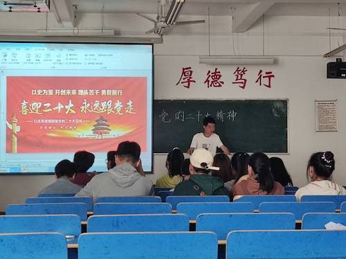 为促进taptap点点官网青年学生更加深入地了解党的二十大精神,凝聚青年磅礴力量,10月16日下午,taptap点点官网于义丰楼组织开展了“学习党的二十大,奋进新征程”主题团日活动。本次主题团日活动由各班团支书主讲,taptap点点官网部分同学参加。
