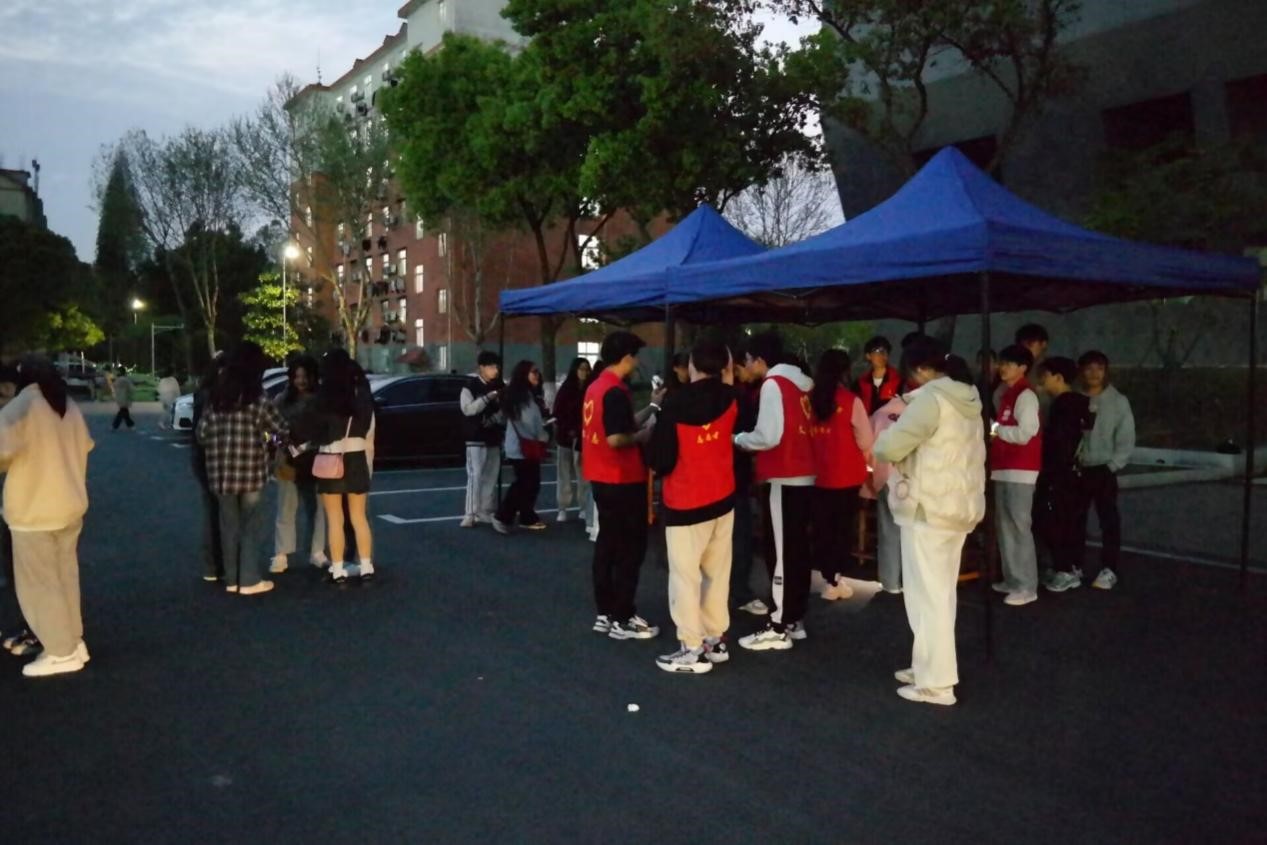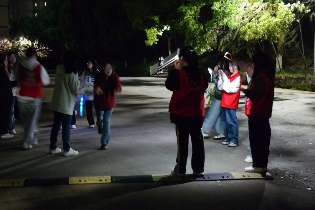 迎着渐落的夕阳,大家紧锣密鼓地开始准备。参赛的同学们陆陆续续来到比赛现场,大家互相帮忙带上荧光手环,在一片欢声笑语中,每个人都对这场与爱同行的活动充满了期待。7点整,活动正式开始,由北区田径馆出发,绕至西门,再经过宿舍楼,最后从渊明大道再返回起点。在渐暗的天色中,荧光点点亮起,宛如散落的星河,照亮了校园的每一个角落。活动过程中也不断地有同学被吸引并且加入进来,很多参赛的同学们也表示“非常开心,很久没有体会过这种感觉了”“活动非常有意思!希望下次还可以参加”等。月上柳梢,晚风轻抚,随着同学们的陆续抵达,本次的活动也圆满落下了帷幕。
