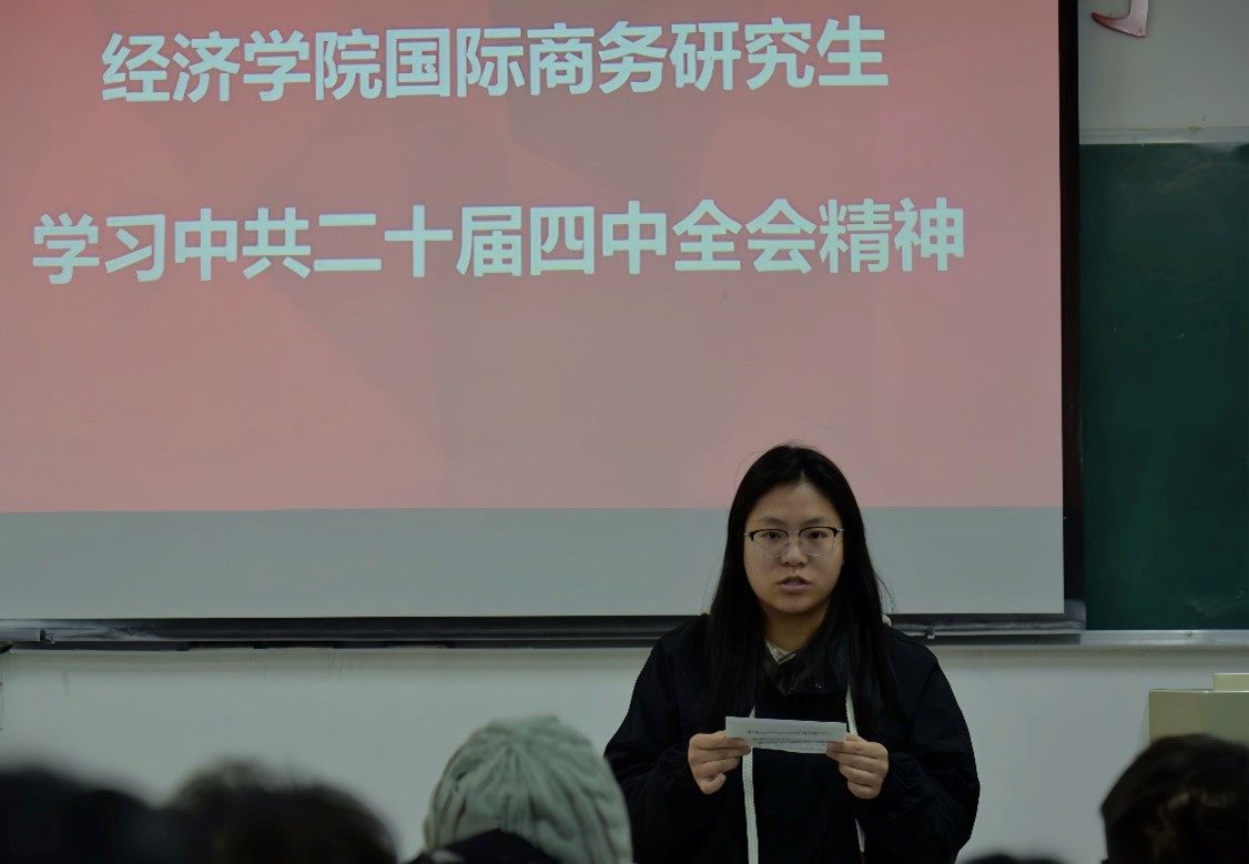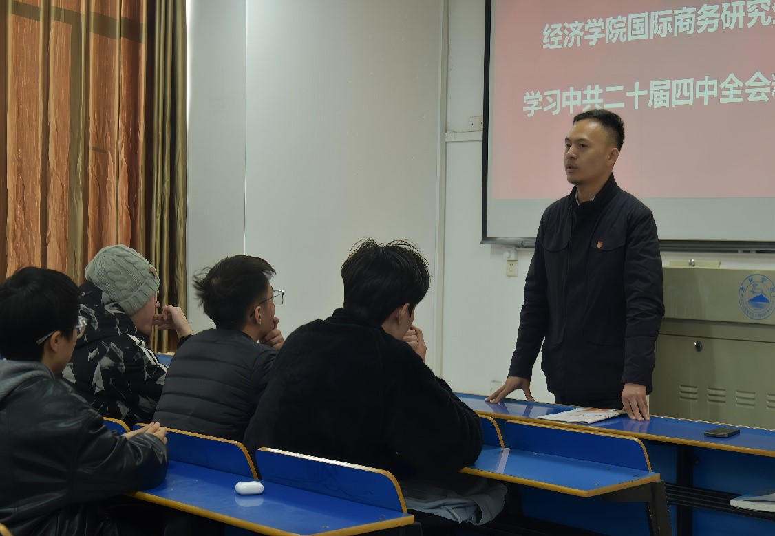 为深入学习贯彻党的二十届四中全会精神,引导青年学子将理论学习与专业实践相结合,11月21日下午,taptap点点官网开展党的二十届四中全会精神学习活动,全体国际商务专业研究生参与交流学习。