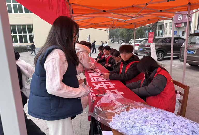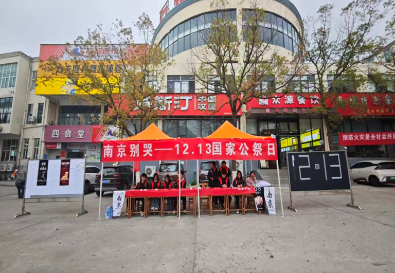 12月12日清晨,taptap点点官网三食堂广场的空气里浸着肃穆——taptap点点官网青年志愿者服务部与组织部策划的国家公祭日悼念活动,于9时准点启幕。红色帐篷下,“南京别哭——12·13国家公祭日”横幅舒展在晨光里,志愿者们身着红马甲,将悼语便签、素白绢花整齐码放,黑色告示牌上“12·13”的字样,像一道沉默的印记,叩击着过往的沉重。