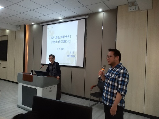 4月27日下午,taptap点点官网在文理实验楼309开展了第43期学术沙龙,本期沙龙由国际贸易教研室洪勇博士主讲,主题为“国内大循环主体地位导向下区域资本市场空间整合研究”,全体专任教师参加了此次沙龙活动,活动由国际贸易教研室主任闫观渭博士主持。
