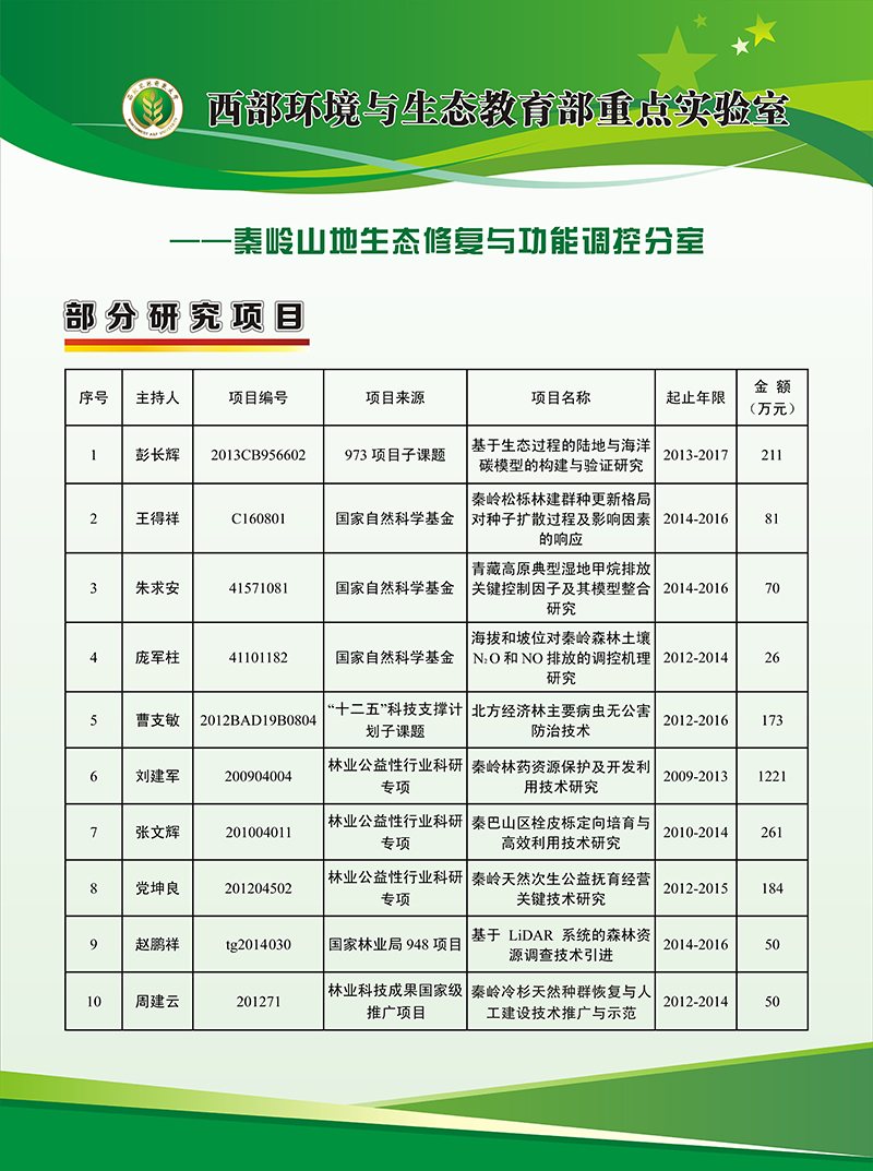 ① 天然森林生态系统结构功能恢复与调控:主要研究栎林、落叶松林等典型生态系统的能量流动、物质循环过程,分析森林生态系统各组分间的相关性及对各种干扰力的反应;生态系统恢复与生物多样性变化,为天然林结构与功能恢复提供依据。